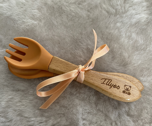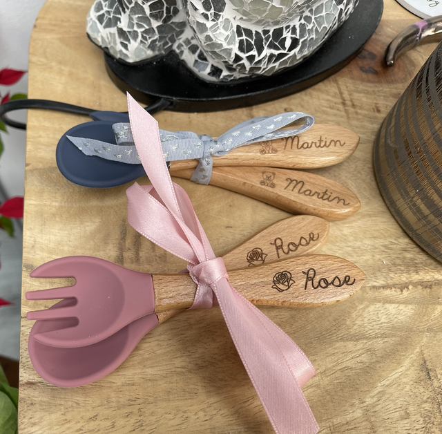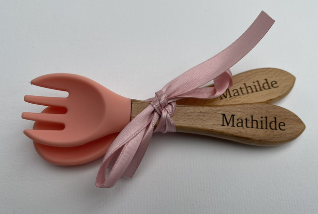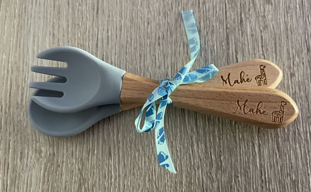 Gravure du prénom et possibilité d’y ajouter un motif (animal, fleur, cœur ou autre - À préciser lors de la commande)